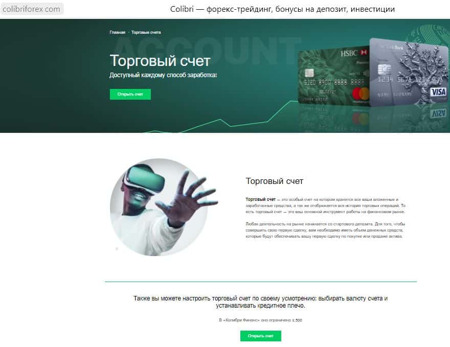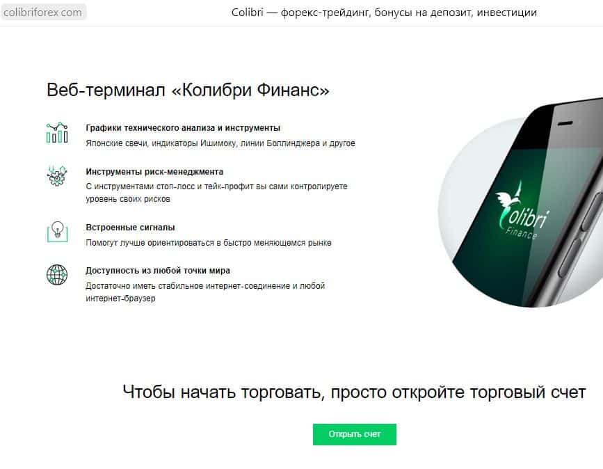 Платформа жуликов Колибри Финанс тоже обозначена только очередными бла-бла, никакой конкретики. И только призыв непременно открыть счет вполне конкретный.