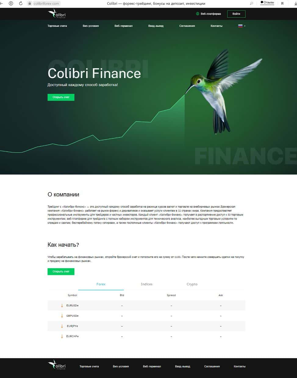 colibriforex com - официальный ресурс лохотрона Колибри Финанс
