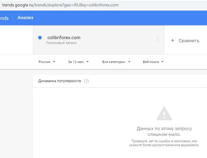 Так же невозможно собрать данные о количестве запросов в Google названия сайта colibriforex com из-за их мизерного количества.