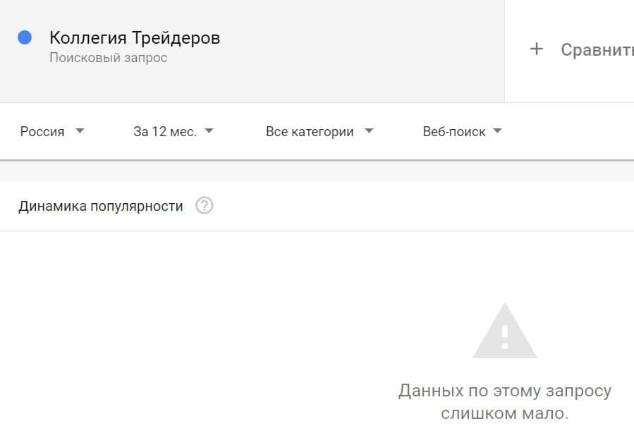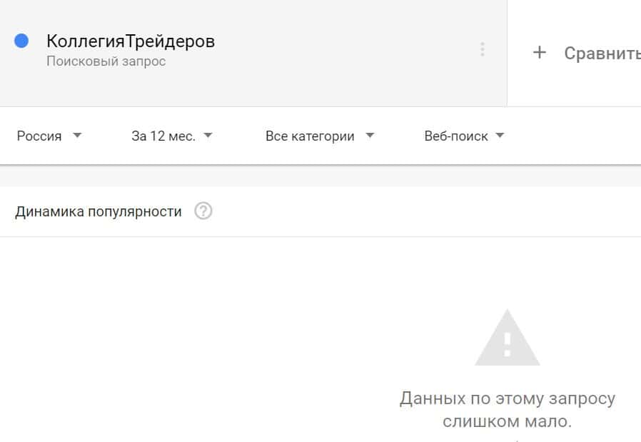 Посмотрим, сколько раз люди искали название бренда "Коллегия Трейдеров" на русском языке с пробелом. Незначительное количество раз.