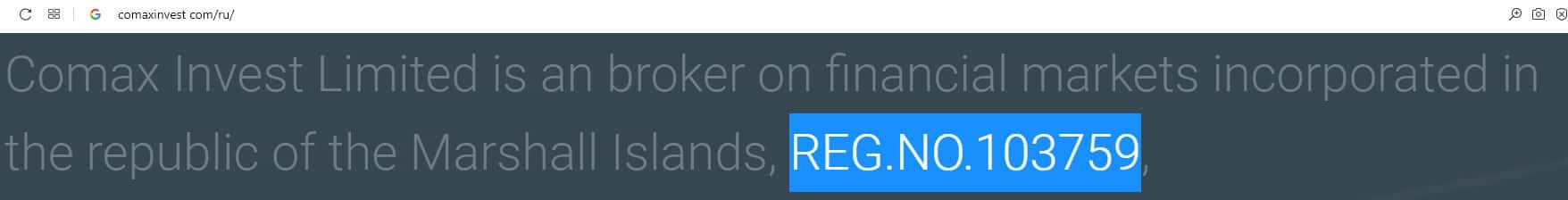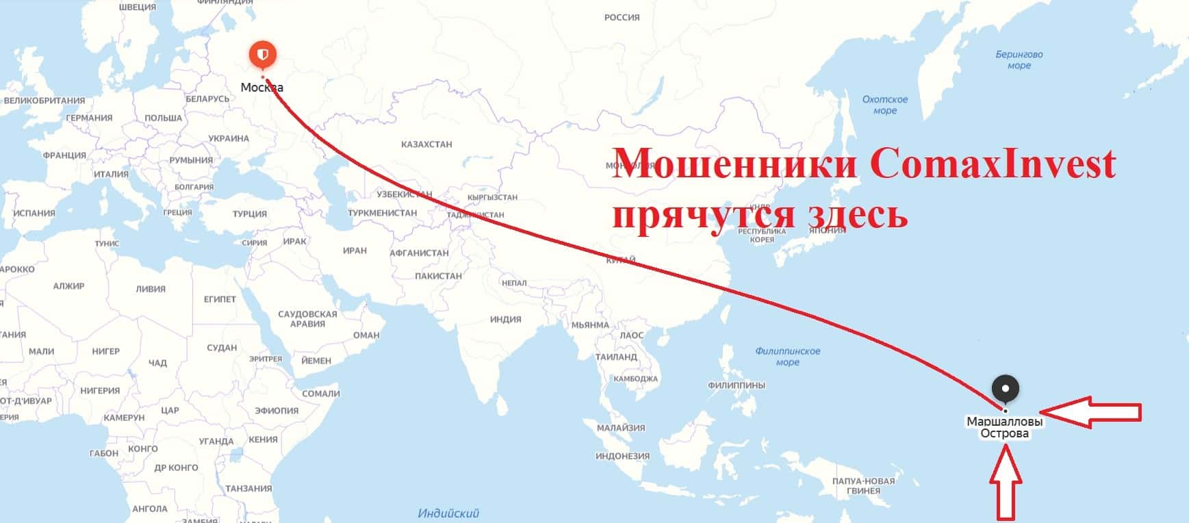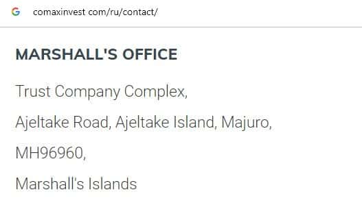 На сайте мошеннической организации Comax Invest указано, что юридическое лицо, которому принадлежит бренд, зарегистрировано на Маршалловых Островах.