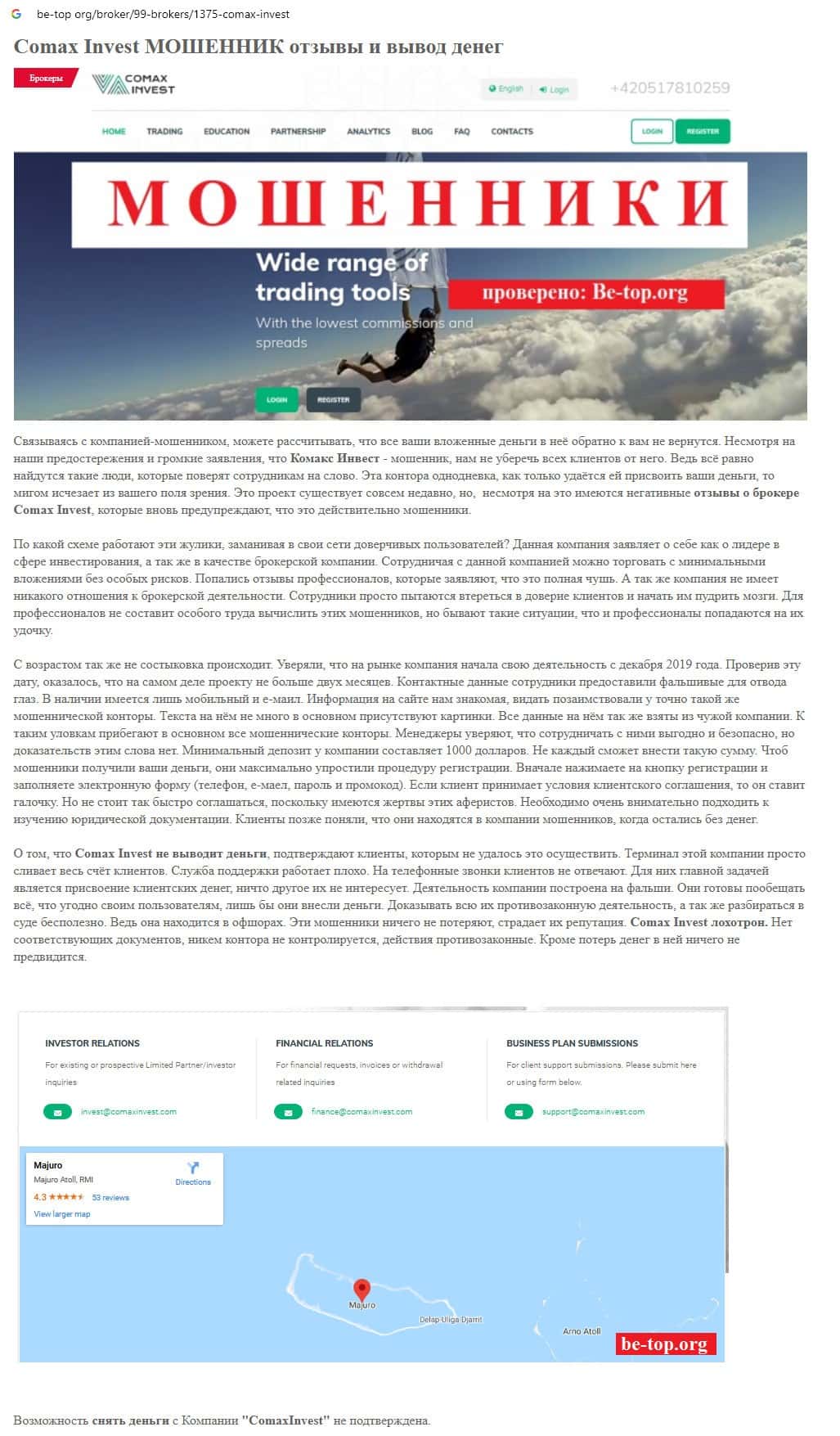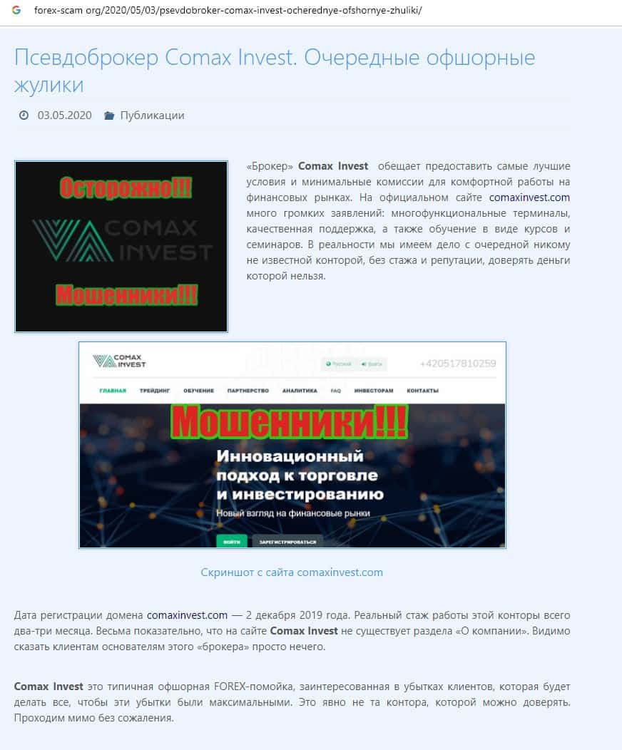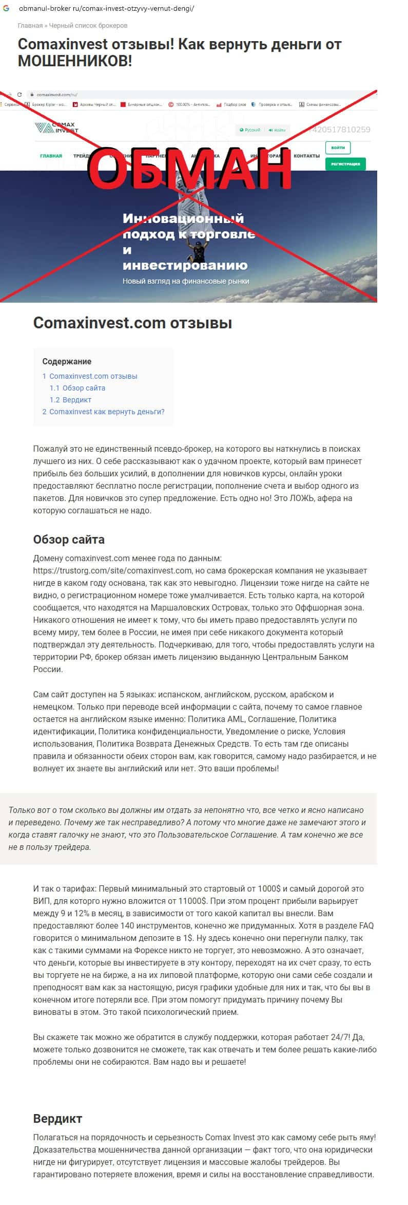 Далее предоставлен еще один обзор об обманщиках Комакс Инвест, которые не возвращают деньги своим клиентам, что является признаком банального лохотрона.
