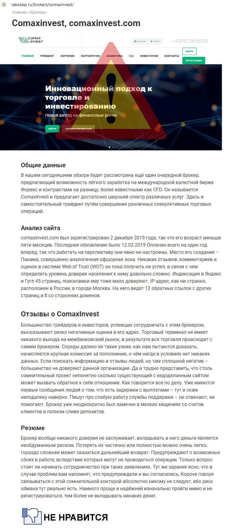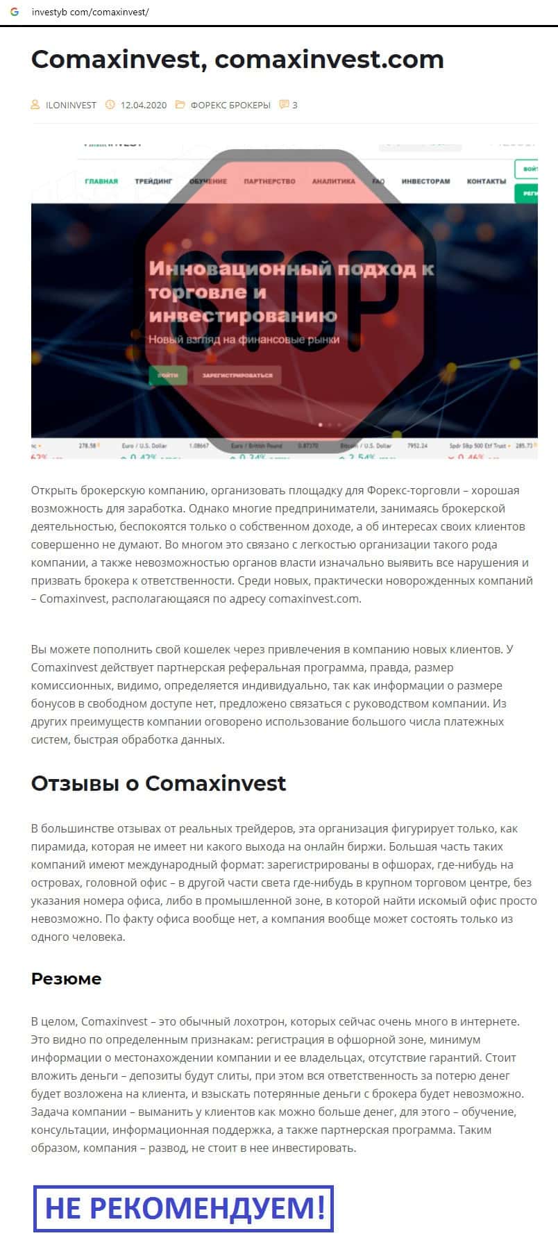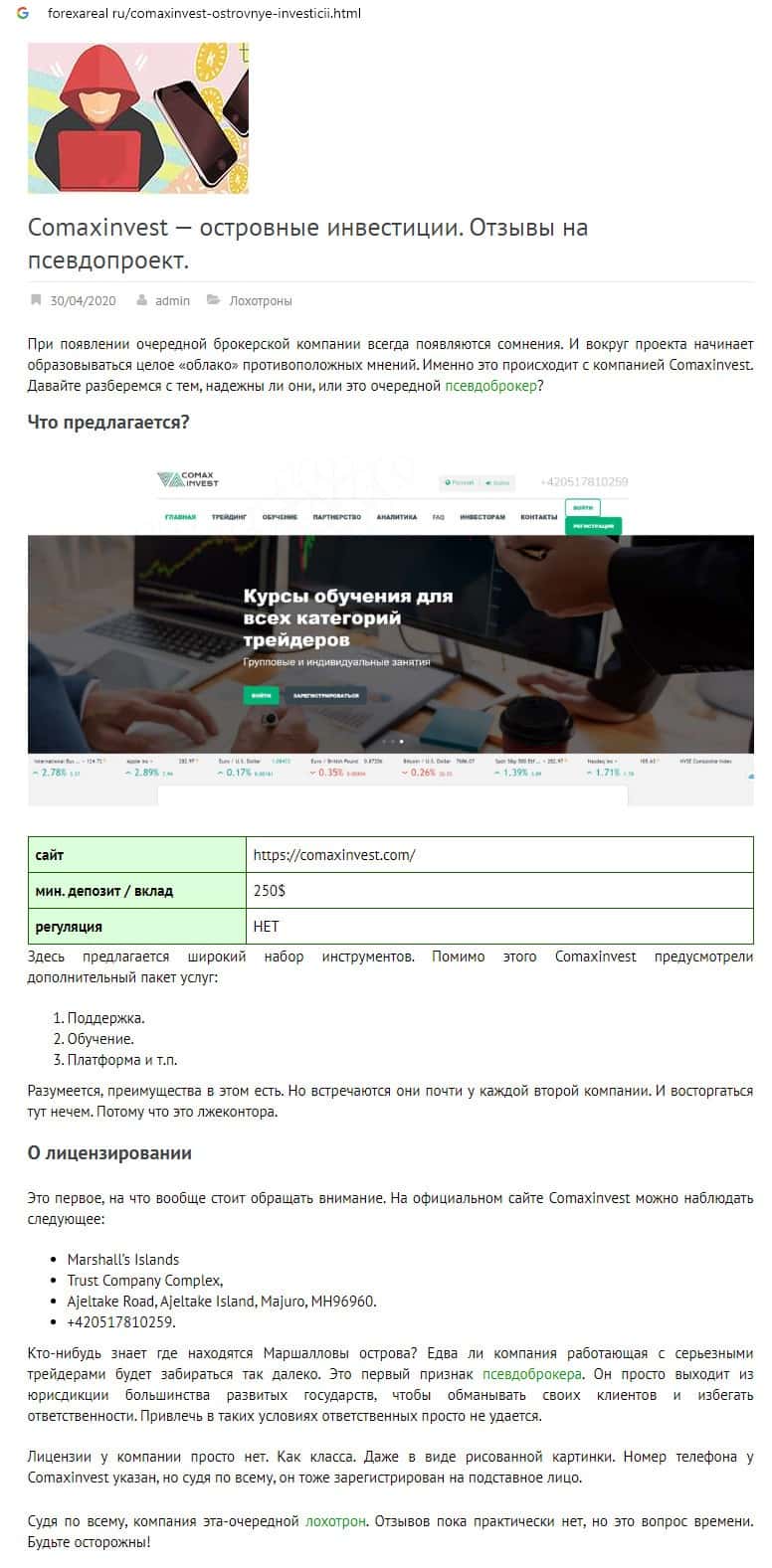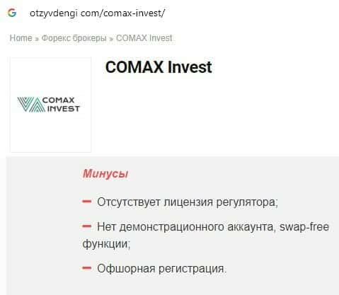 Comax Invest - обзоры лохотронщиков на других интернет-порталах