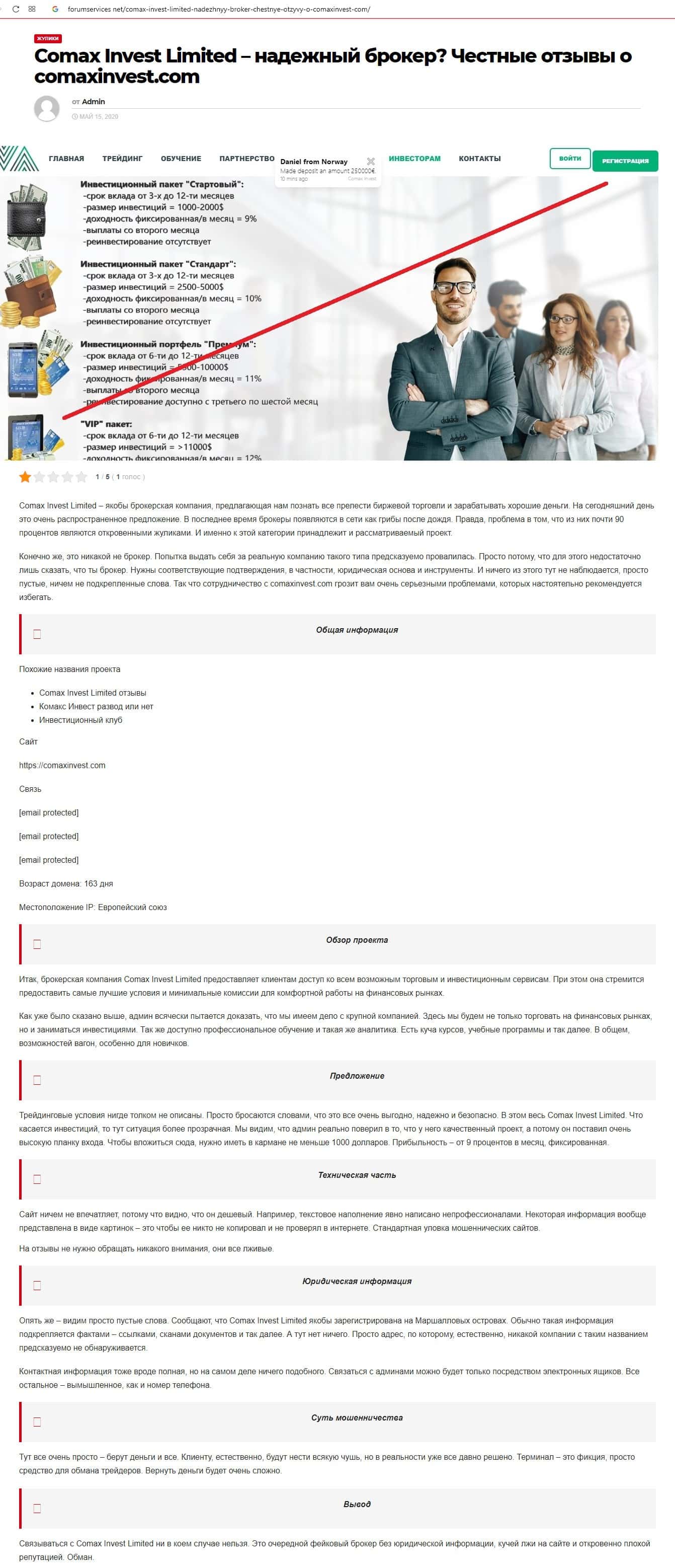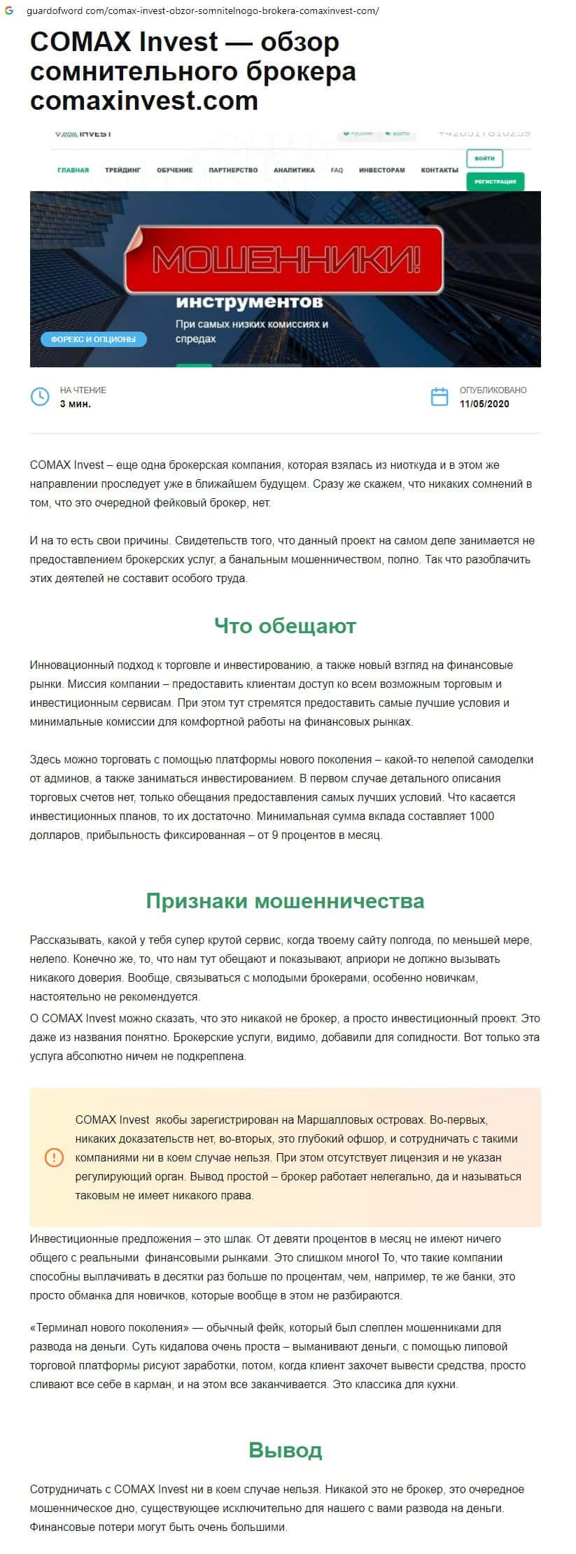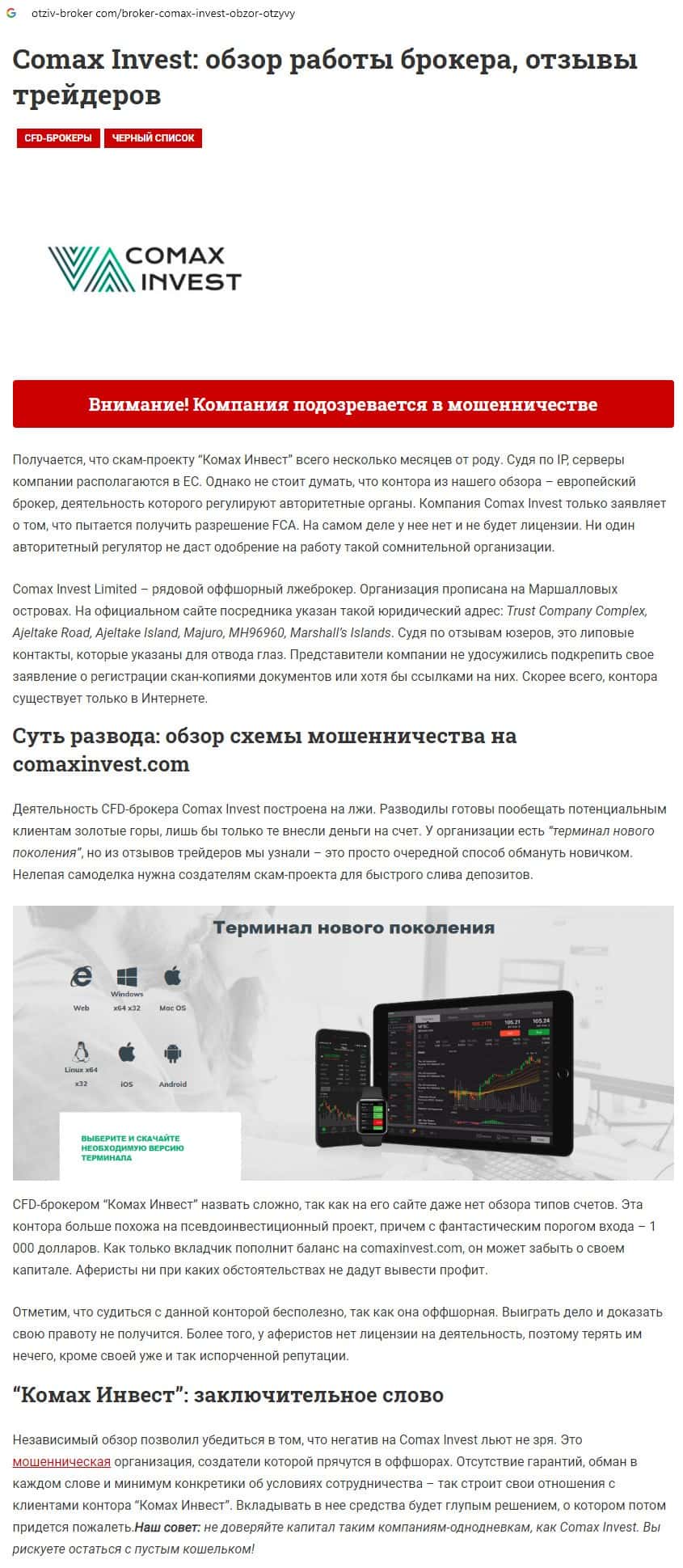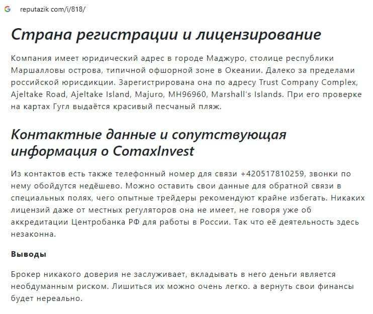 Comax Invest - обзоры лохотронщиков на других интернет-порталах