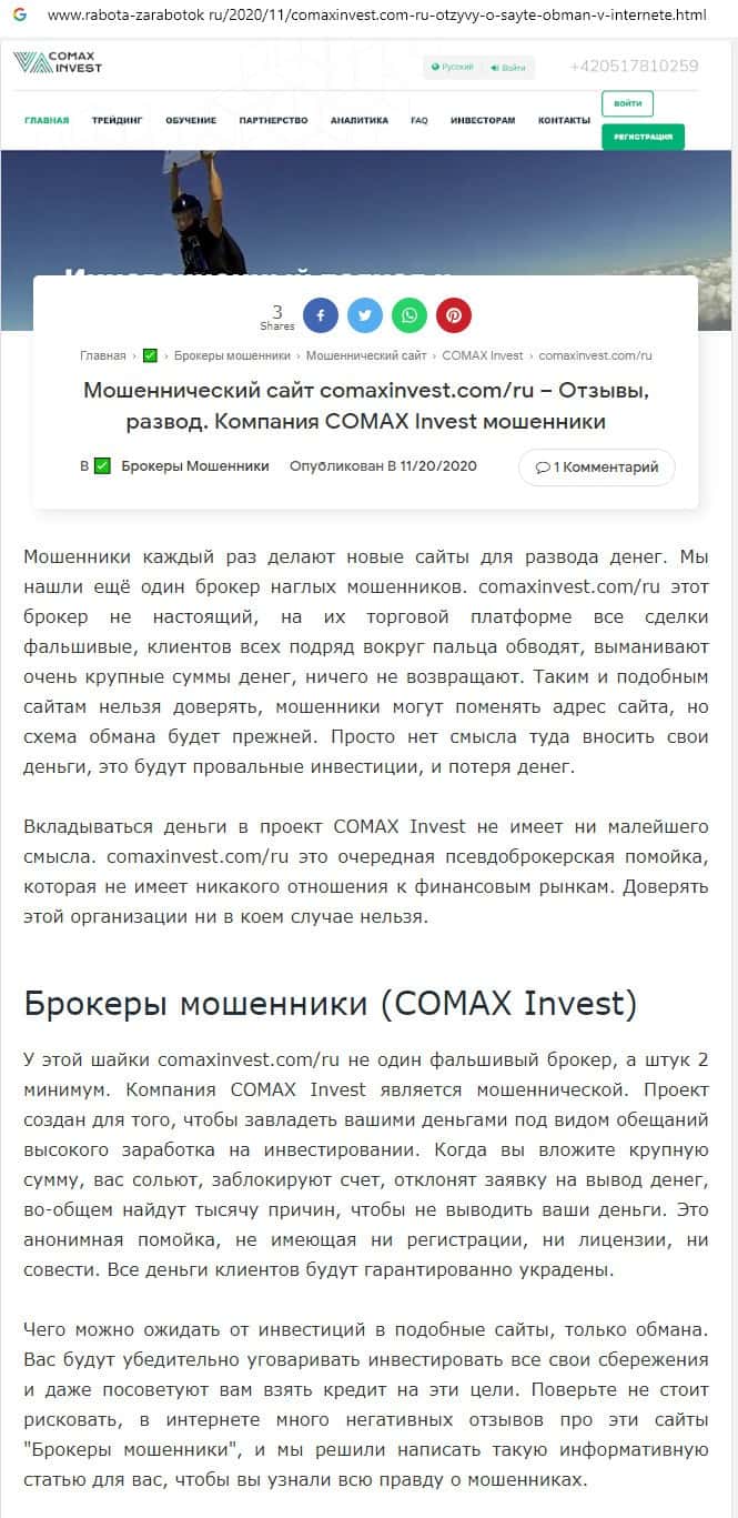 - Comax Invest - обзоры лохотронщиков на других интернет-порталах