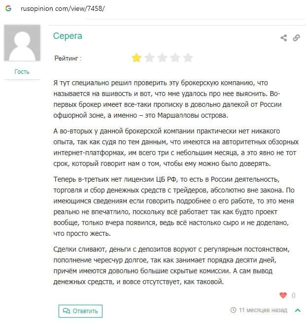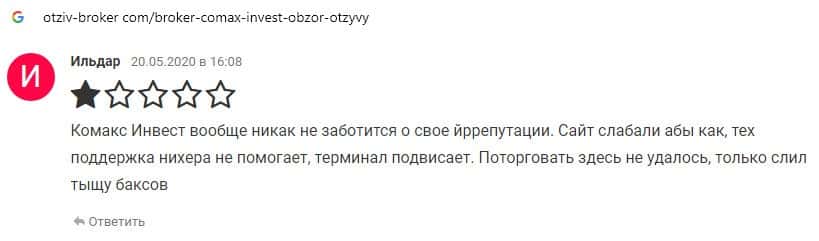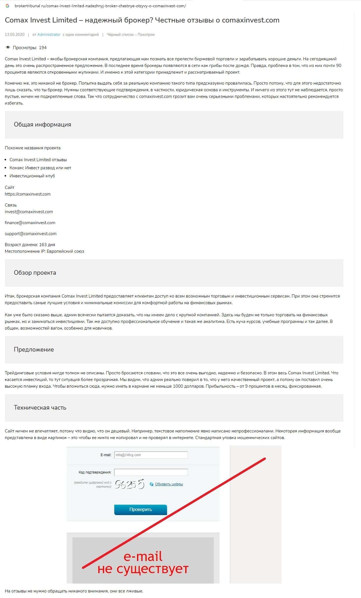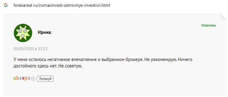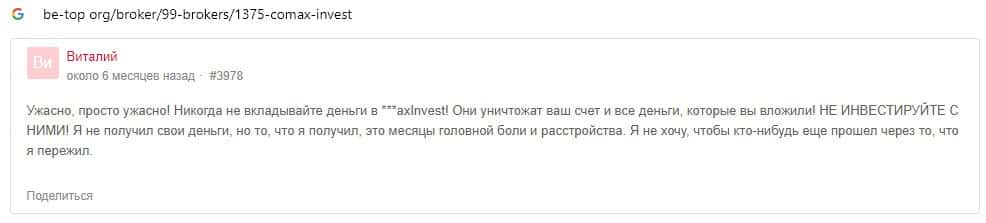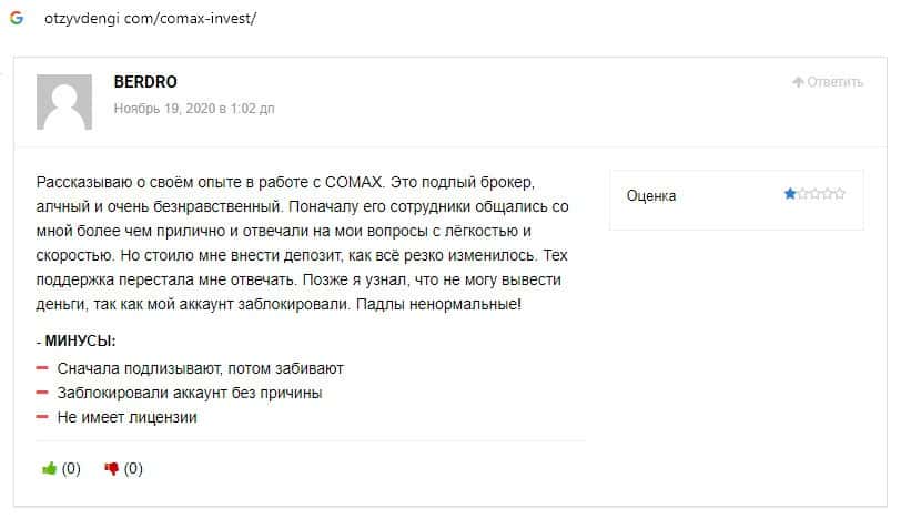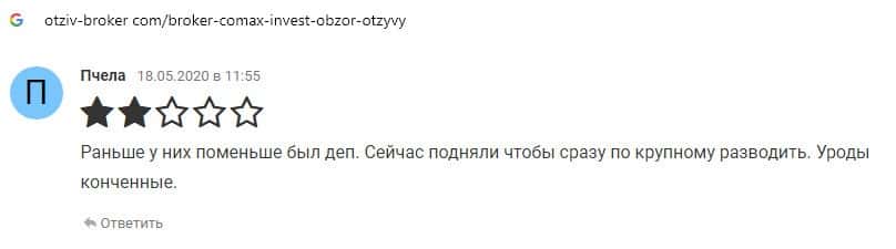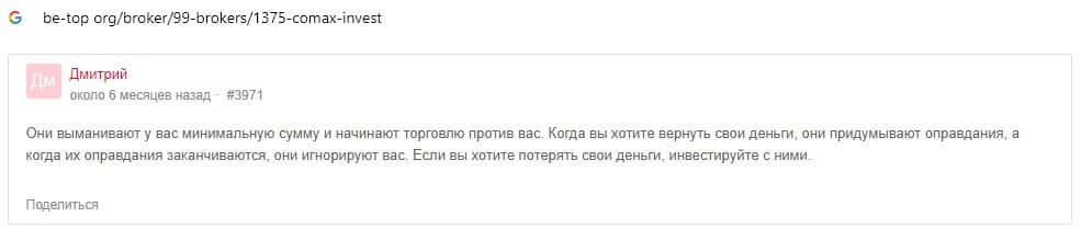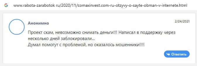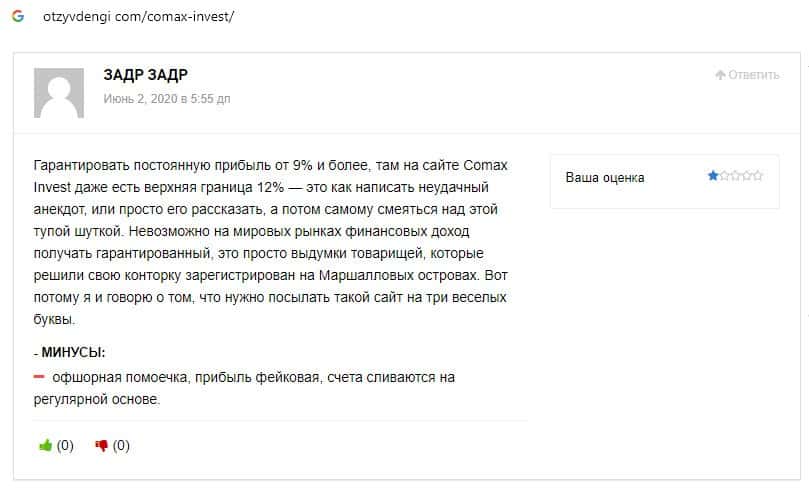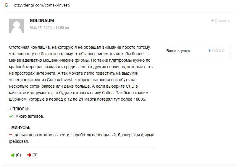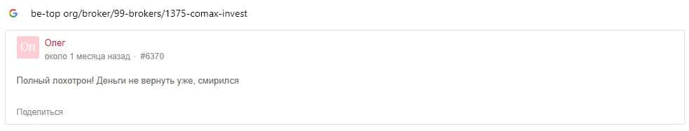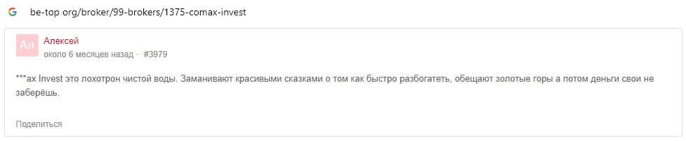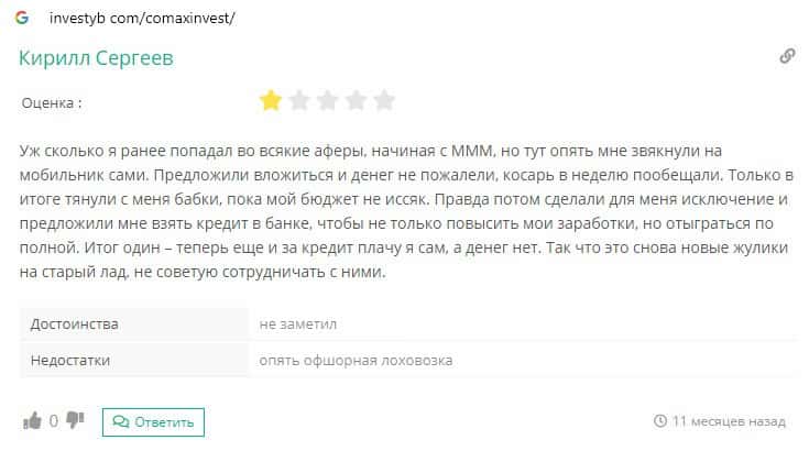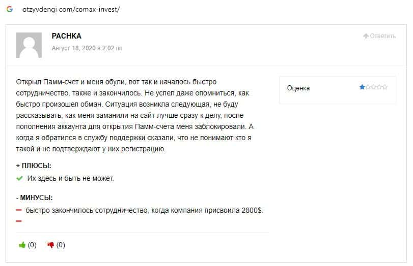 Отзывы о скам-конторе Комакс Инвест, ныне присутствующие в сети