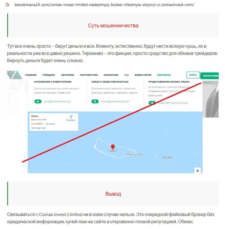 Ниже предоставлен обзор скам-конторы Comax Invest о сути мошенничества со стороны псевдо-брокерской компании, у которой откровенно плохая репутация.