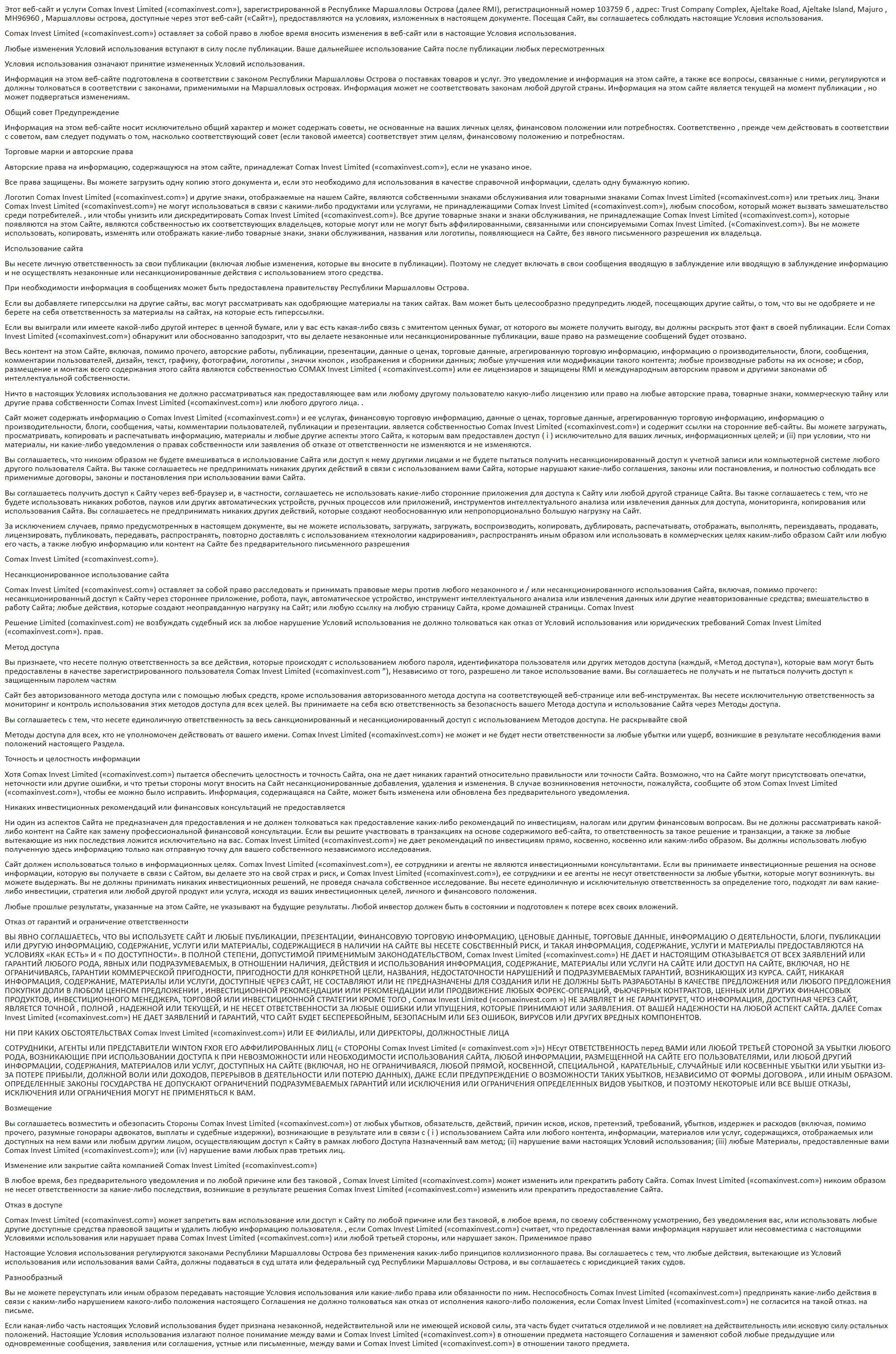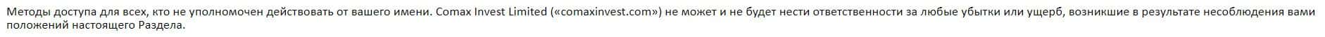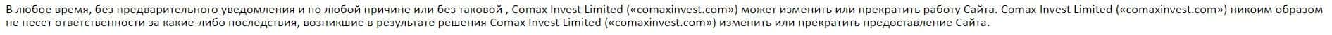 Аферисты Comax Invest снимают с себя ответственность рассказывая о том, что информация предоставленная на их сайте не является инвестиционным советом.
