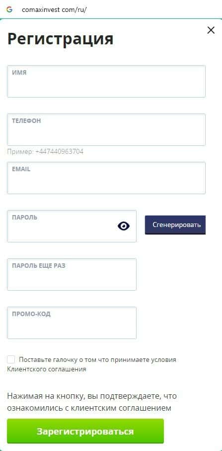 Клиентское соглашение на веб-сервисе обманщиков Комакс Инвест