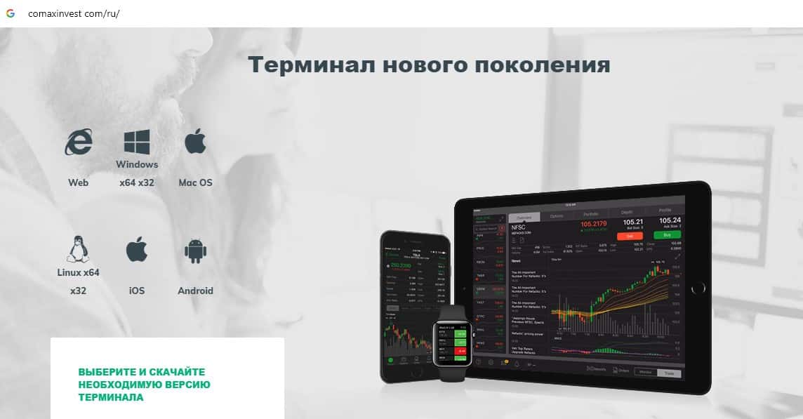Мошенники Комакс Инвест предлагают скачать терминал для торговли на свой смартфон и персональный компьютер, чего делать не рекомендуем !!!