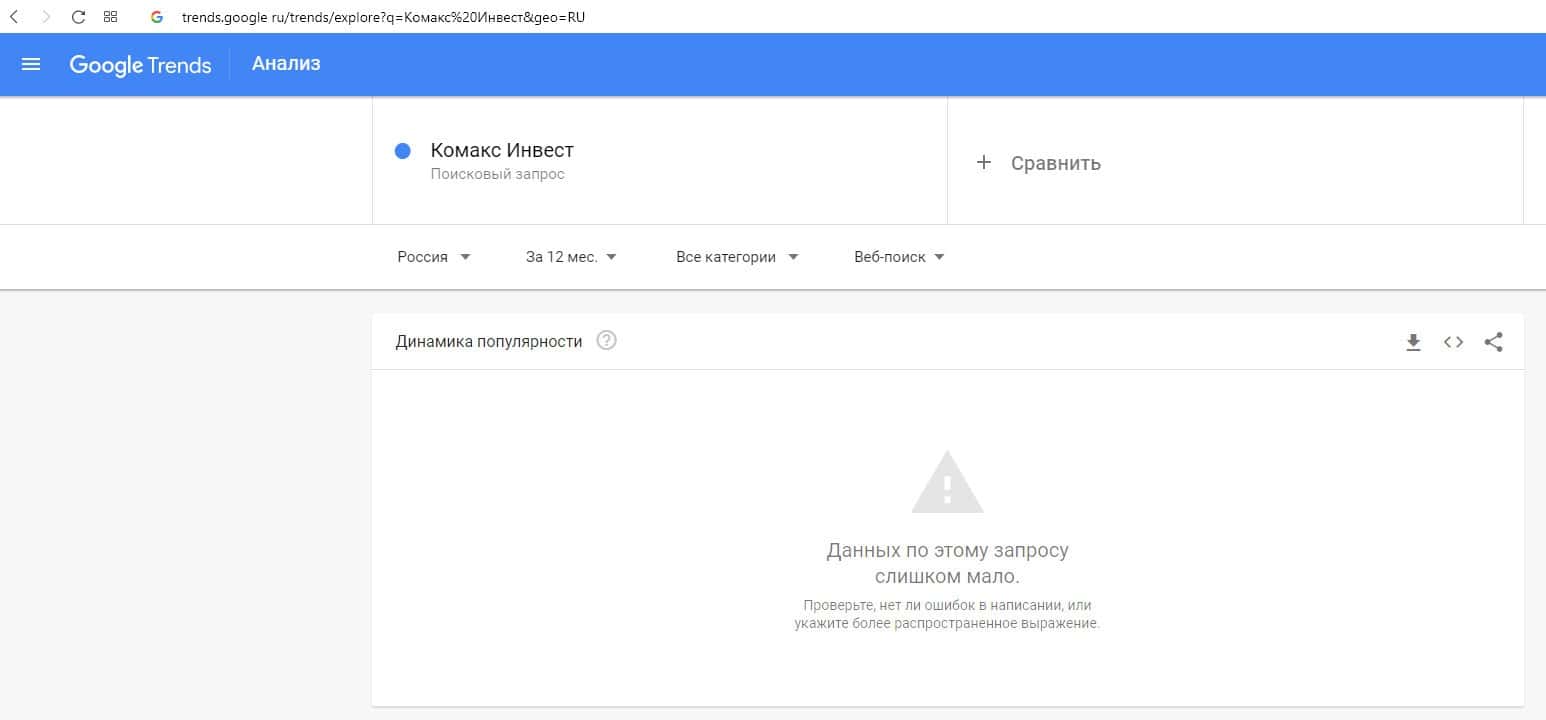 О количестве запросов по бренду англоязычного названия компании "Comax Invest" на Гугл Трендс ничего не известно.