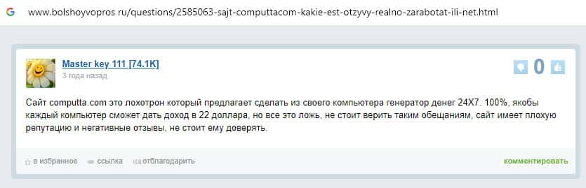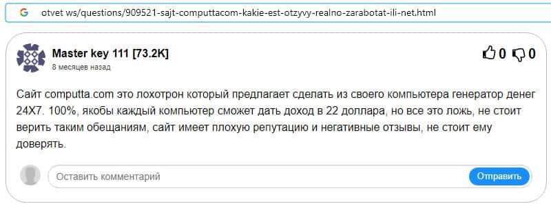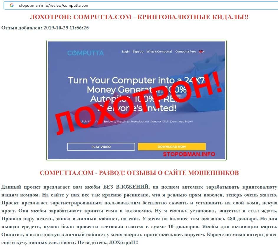 Отзывы о лохотроне Computta, ныне присутствующие в интернет-сети