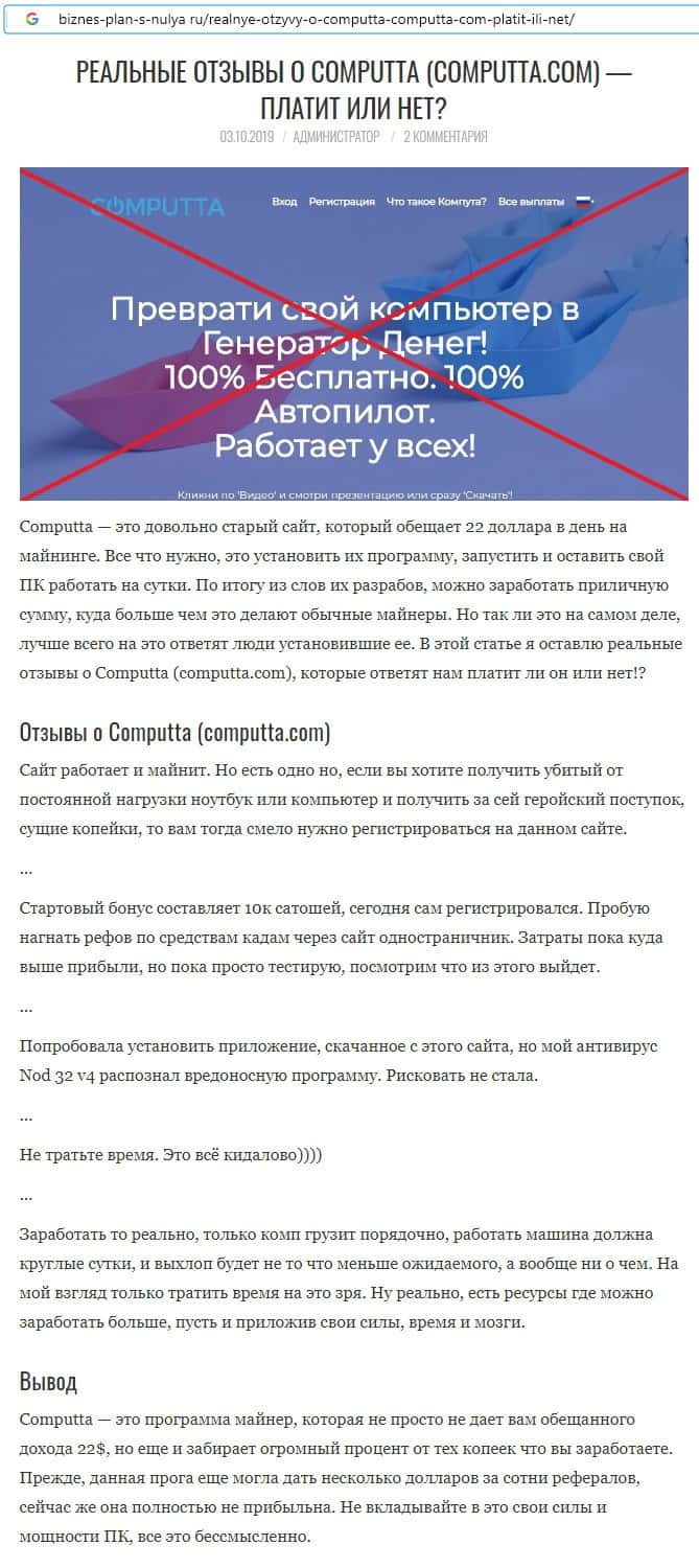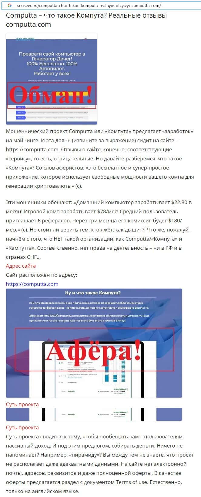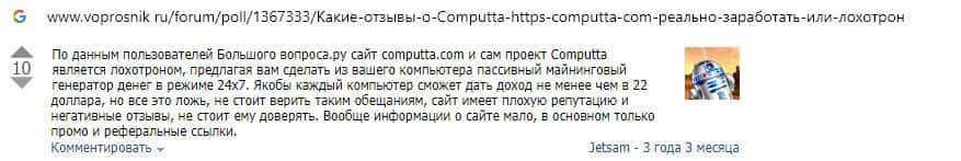 Компутта - обзоры скам-проекта на других интернет-порталах