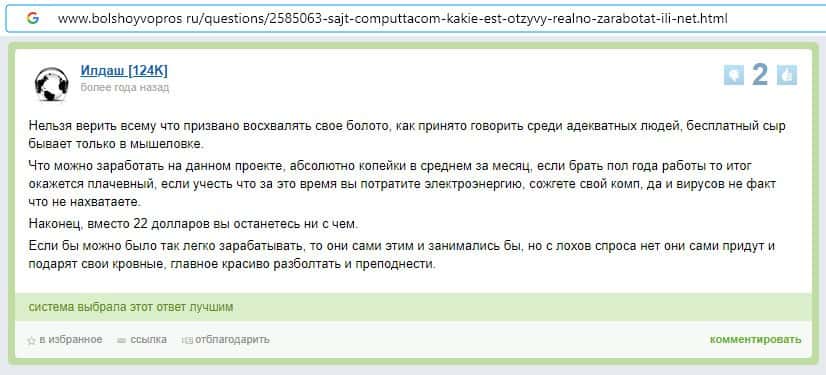 - Отзывы о лохотроне Computta, ныне присутствующие в интернет-сети