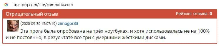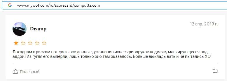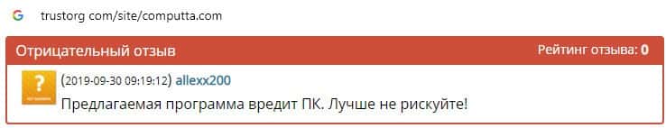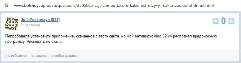 Далее предлагаем ознакомиться с пользовательскими отзывами о том, что программа Компутта является вредоносной для компьютера, скачивать ее нельзя !!!