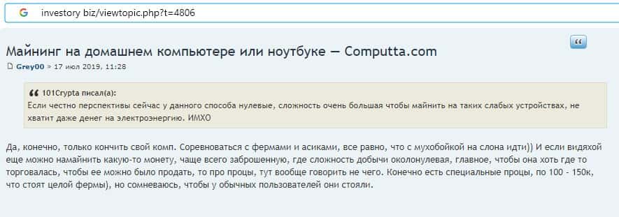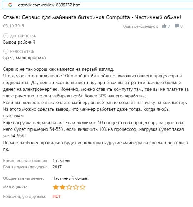 Майнить при помощи Computta по мнению пользователей не выгодно