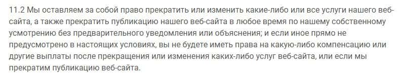 Аферисты Компутта уведомляют пользователей своего сайта о том, что их компания вправе изменять предоставляемые услуги, либо же прекратить обслуживание клиента.