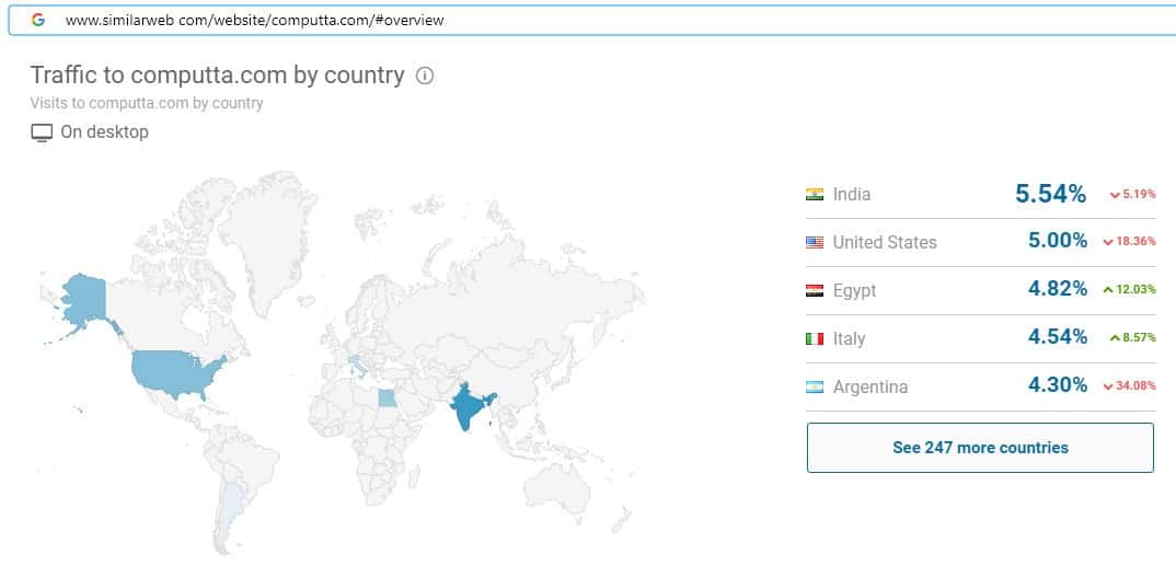 При проверке источников бренда по странам скам-компании Компутта на сайте similarweb com, информация отсутствует, что является признаком фейкового лохотрона.