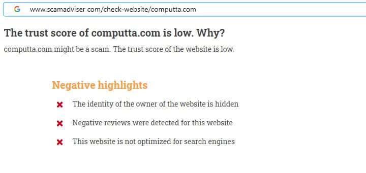 Проверка скам-конторы Computta на сайте скамадвайсер ком показала, что у данного сайта низкий рейтинг, а также выявлено множество отрицательных моментов в работе сервера.