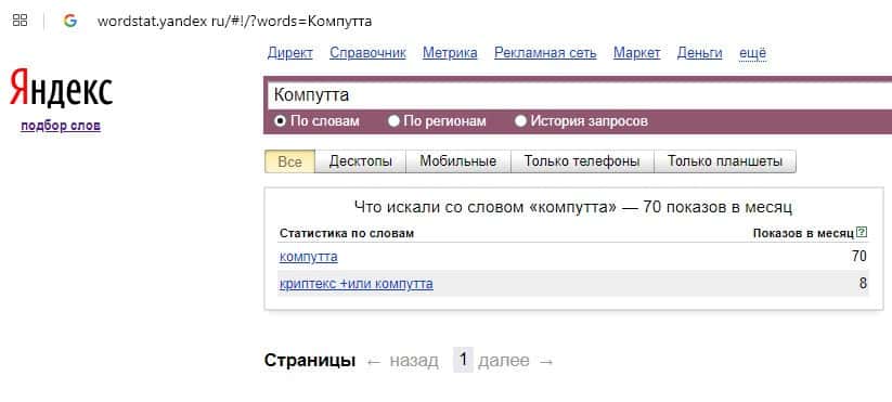 wordstat yandex ru - веб-сервис для оценки пользовательского интереса