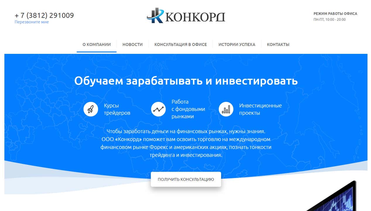 Конкорд Омск - очередные мошенники сети интернет, которые занимаются наглым разводом пользователей сети интернет под довольно банальным предлогом инвестиций, в ходе которых жулики Konkord Omsk кидают на деньги свою клиентуру и сливают их в руки брокеров-мошенников как ТелеТрейд, они же TeleTrade или же шулерам Форекс Оптимум. В связи с этим сотрудничать с ними не рекомендуем !!!
