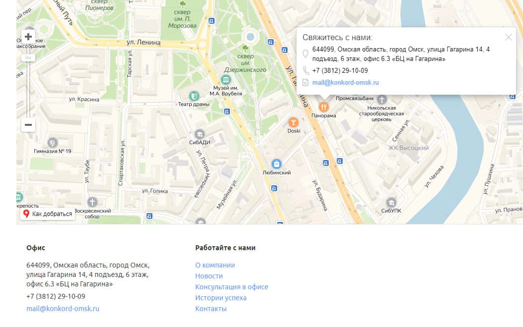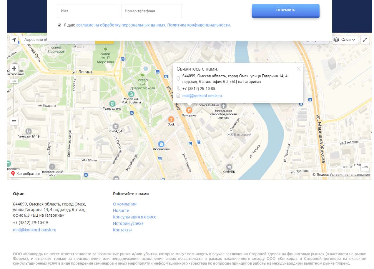 Несмотря на свою халтурность шулера Konkord Omsk все же отвели под свои контакты отдельный раздел своего сайта, где навели довольно мало информации для обратной связи с собой, что говорит о не особом их желании лишний раз иметь дело с наивной клиентурой, хотя шулера Конкорд Омск все же и зарабатывают на ее разводе. Итак контакты шулеров Konkord Omsk: