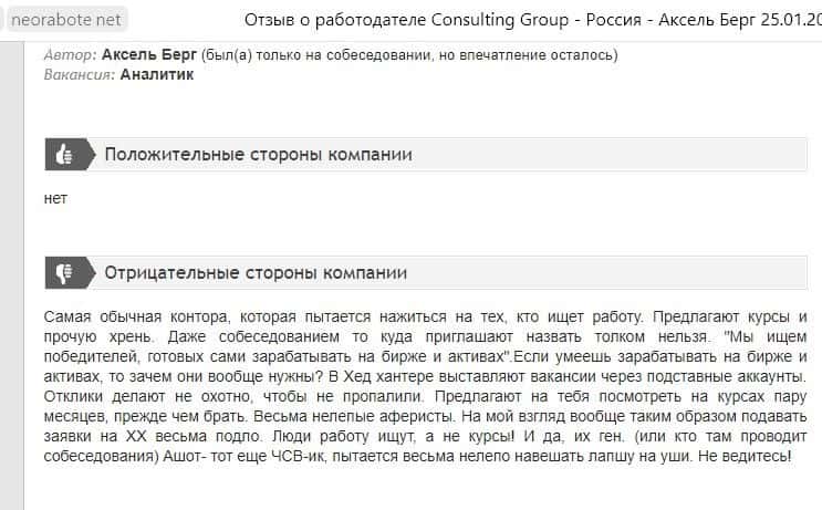 Реальные отзывы пользователей, посетивших офис шарашкиной конторы Консалтинг Групп