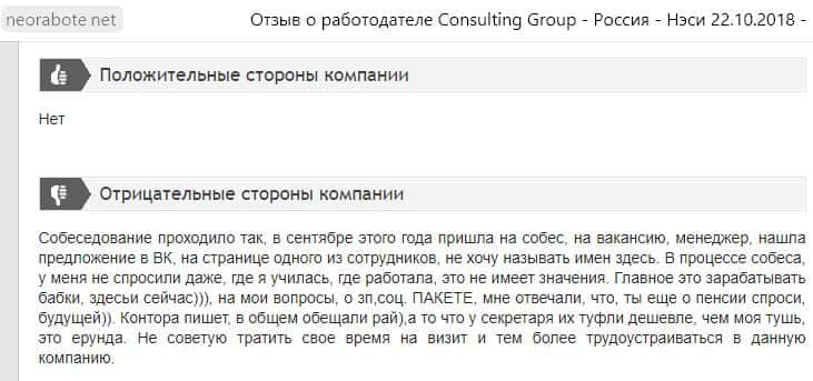 - Консалтинг Групп - контора, которая наживается на тех, кто ищет работу