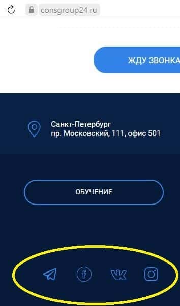 Аферисты Консалтинг Групп не любят общение. На сайте мошенников есть иконки различных соцсетей, но это просто картинки, потому что переход по ним не работает.