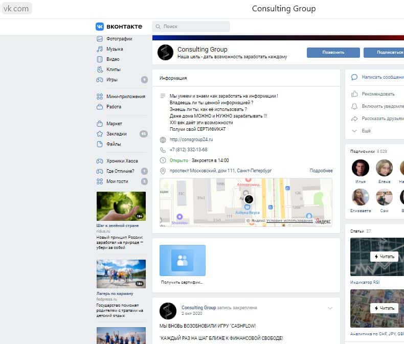 По другим источника мы нашли страницу мошенников Консалтинг Групп в Контакте. Как видим, активность на ней была заморожена в начале октября 2020 года.