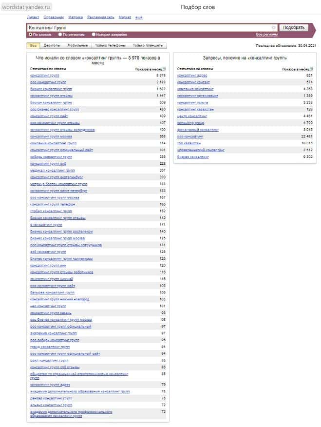 - Популярность бренда Консалтинг Групп в поисковике Яндекс