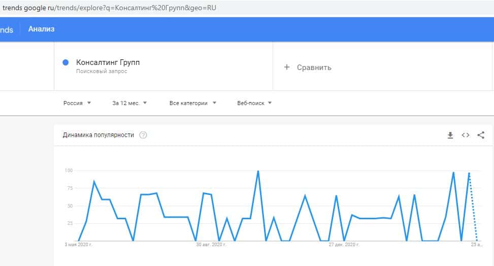 - Анализ количества поисковых запросов бренда ConsGroup24 Ru в системе Google