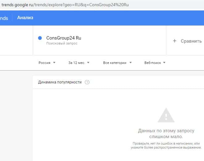 По бренду "ConsGroup24 Ru" в сети Google не было ни одного запроса.