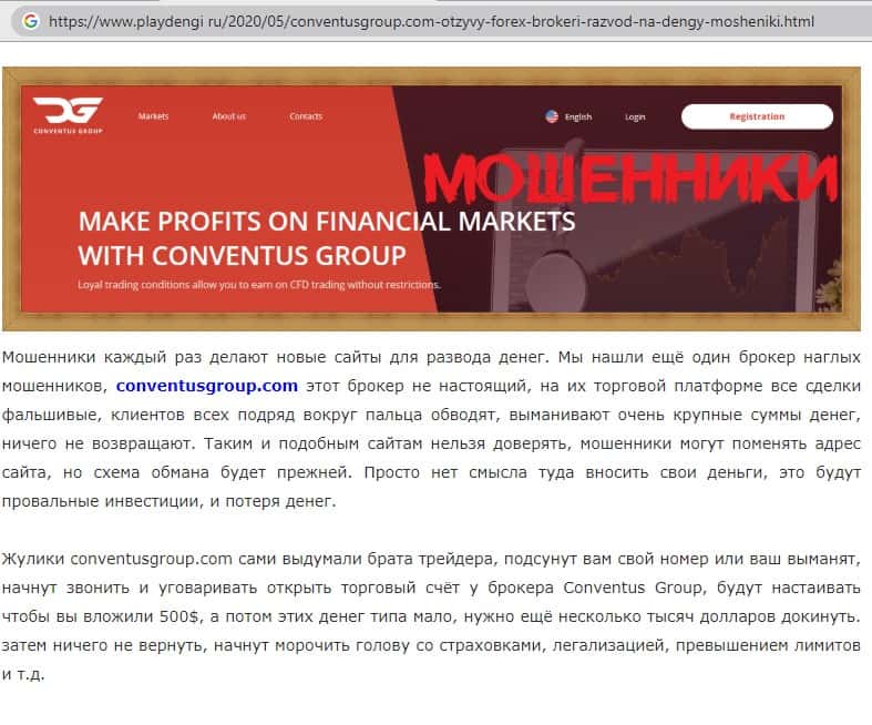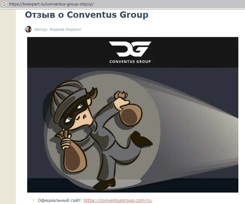 Негативная статья посвящённая аферистам ConventusGroup