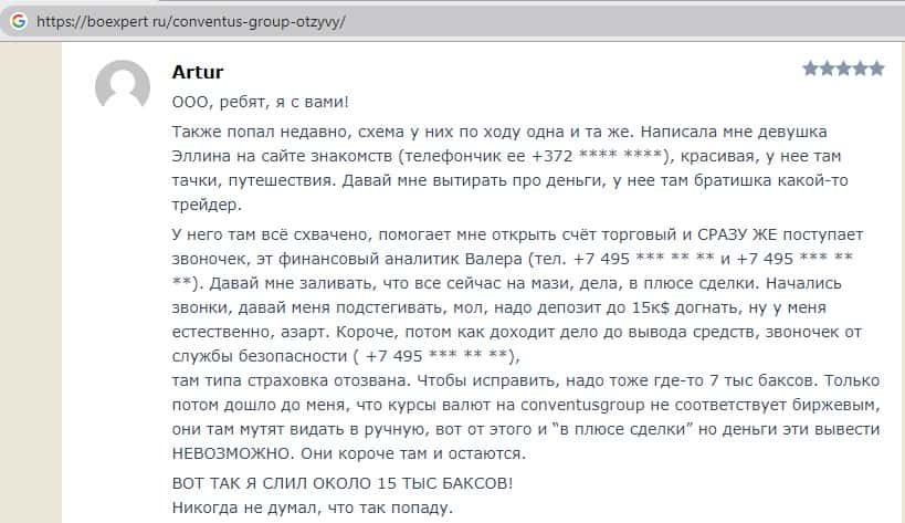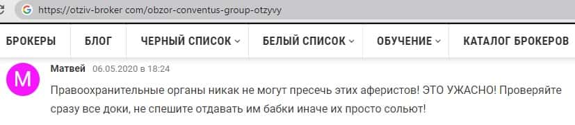 Негативный опыт одного из брокеров после сотрудничества с аферистами ConventusGroup