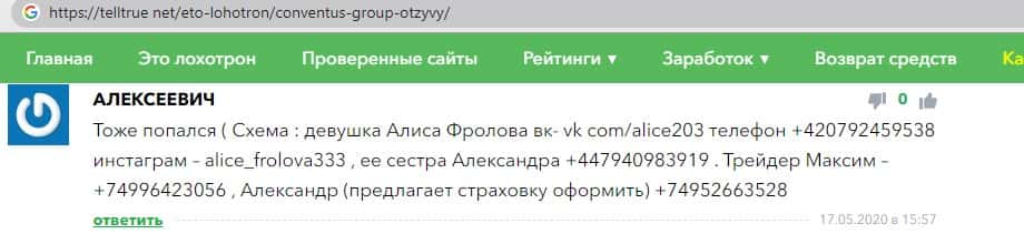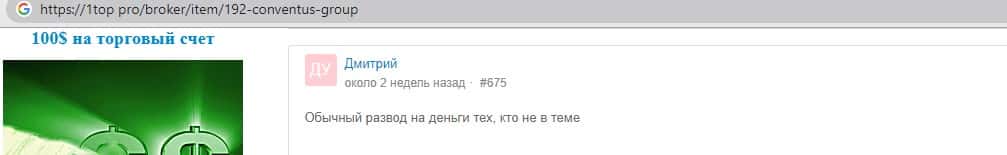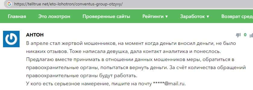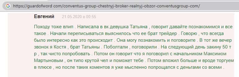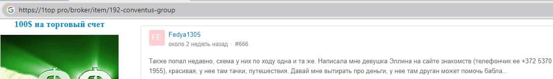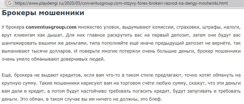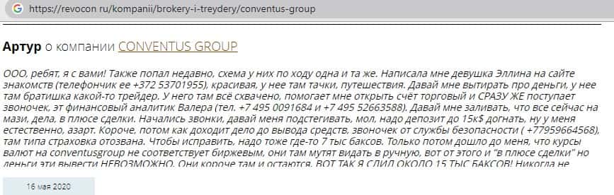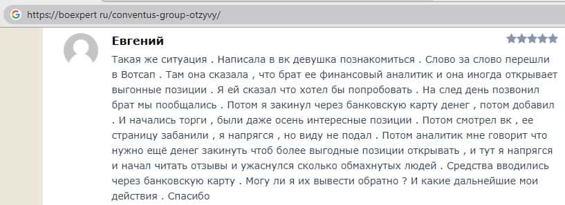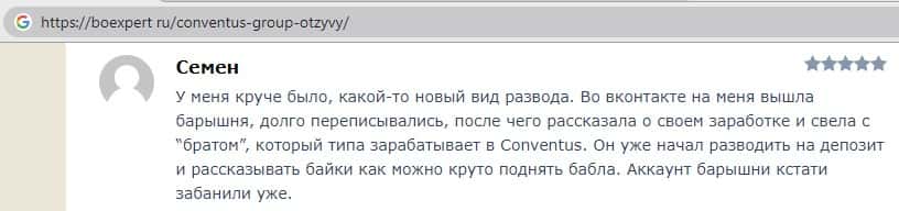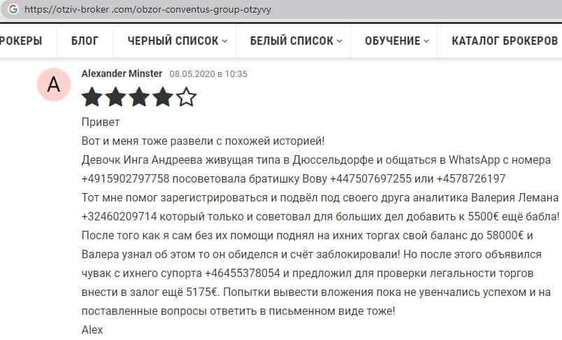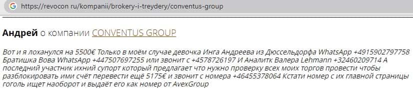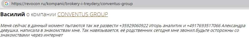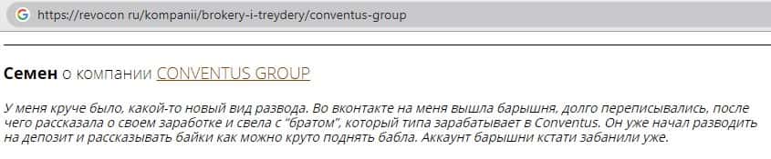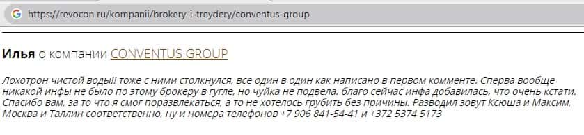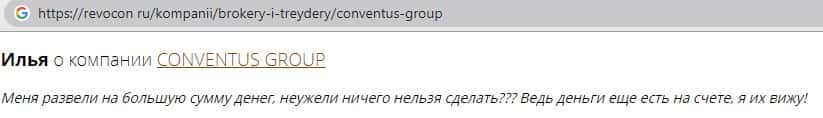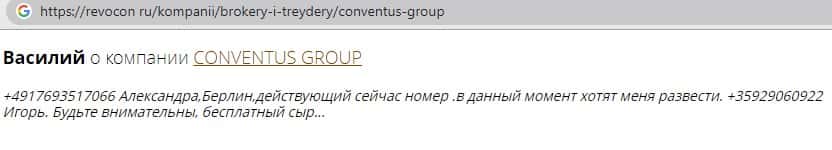 - Также комментарий трейдера который попался на удочку аферистов ConventusGroup
