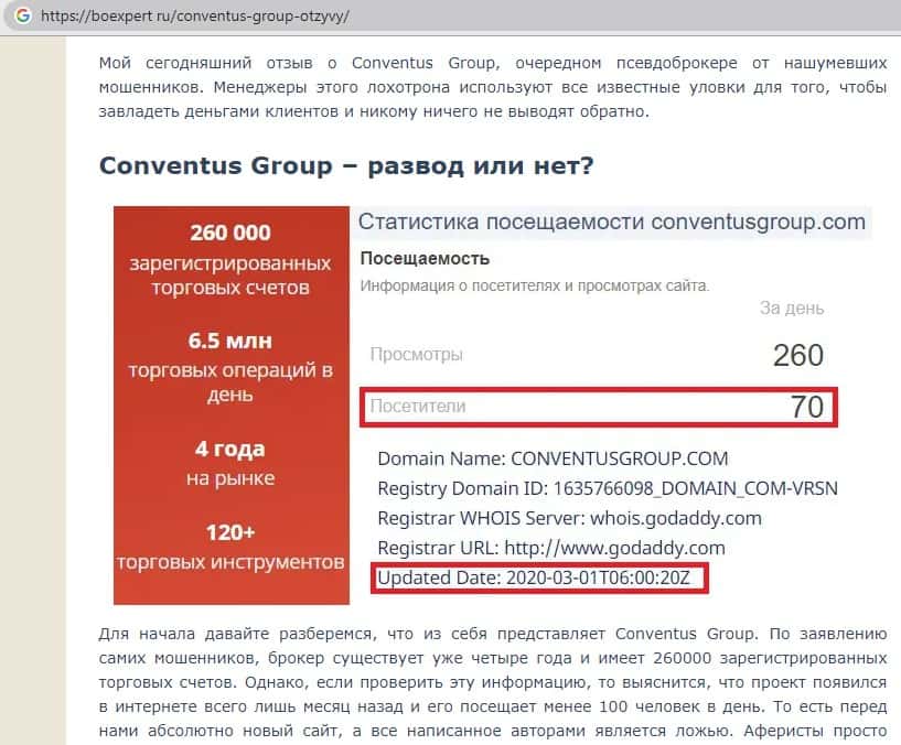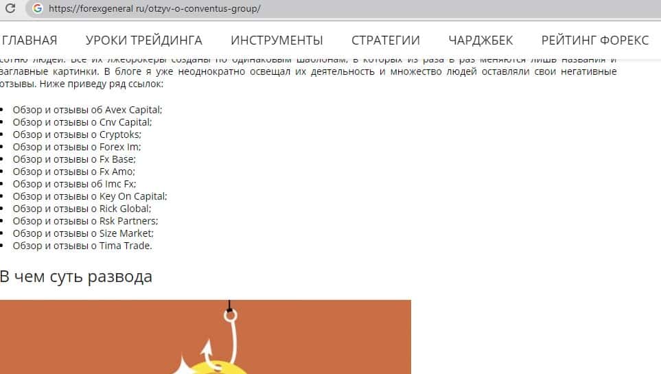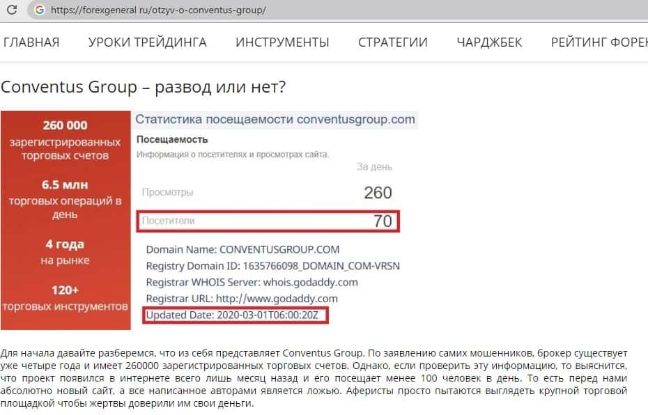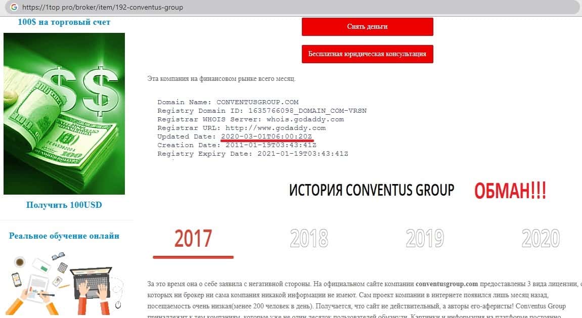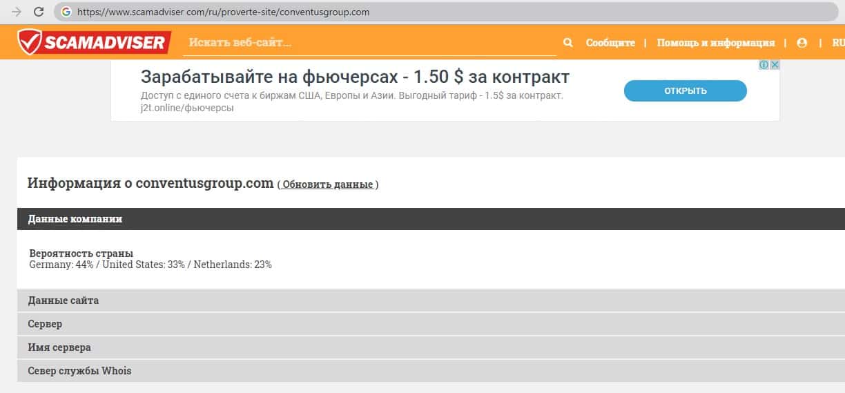 - Обзор на внешний вид мошеннического сайта ConventusGroup