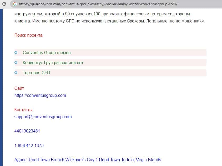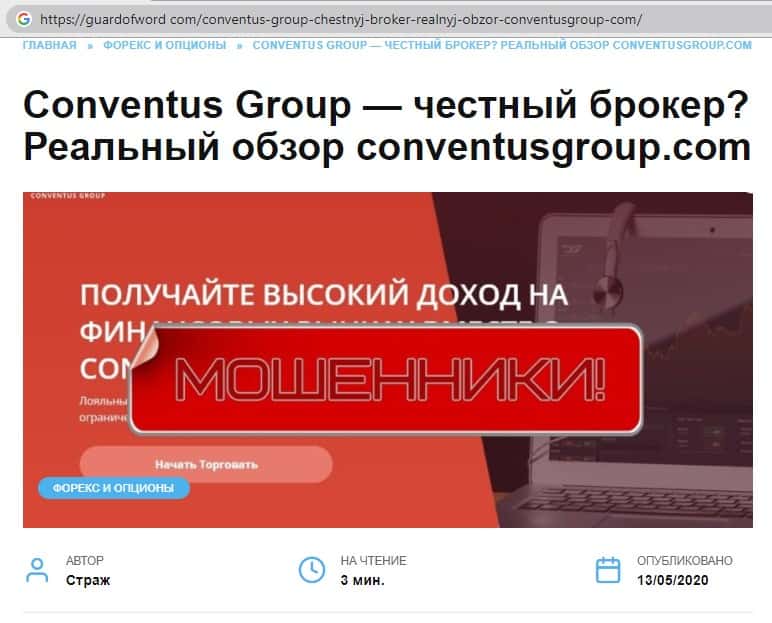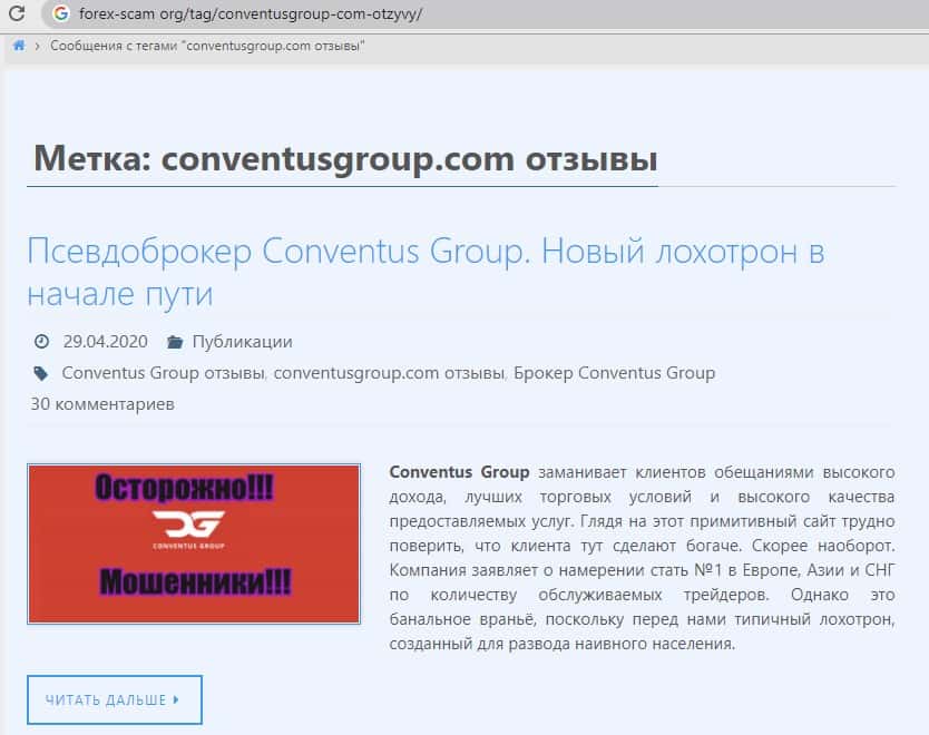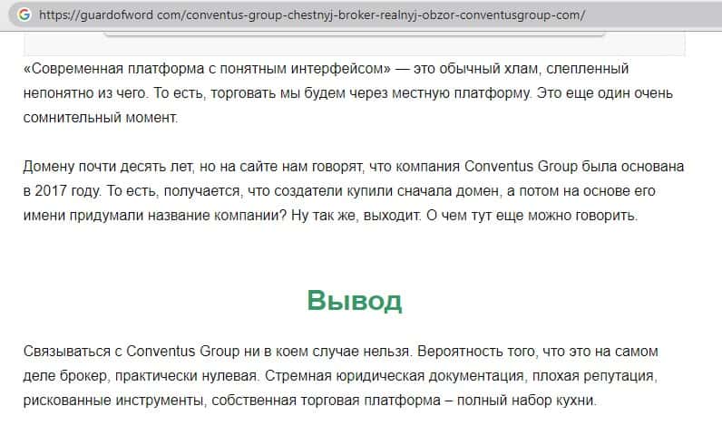 - Найдена негативная статья посвященная аферистам ConventusGroup