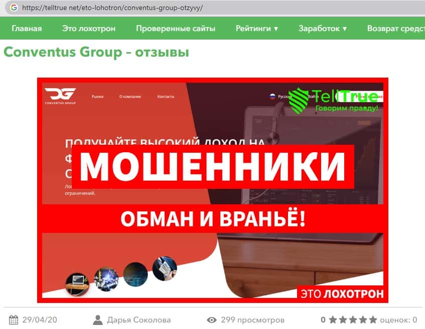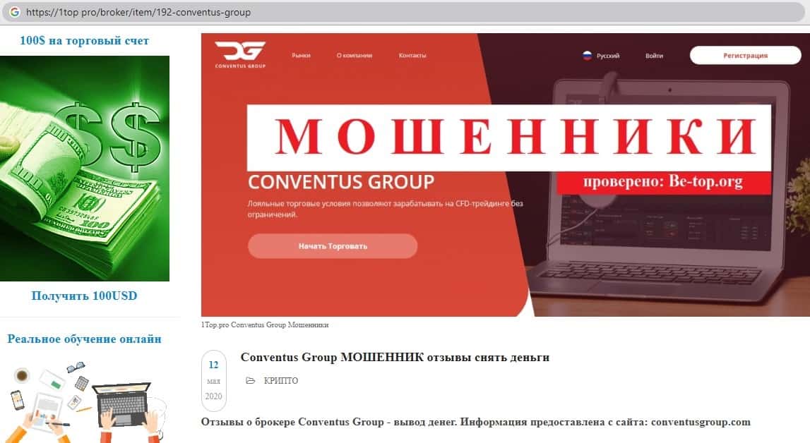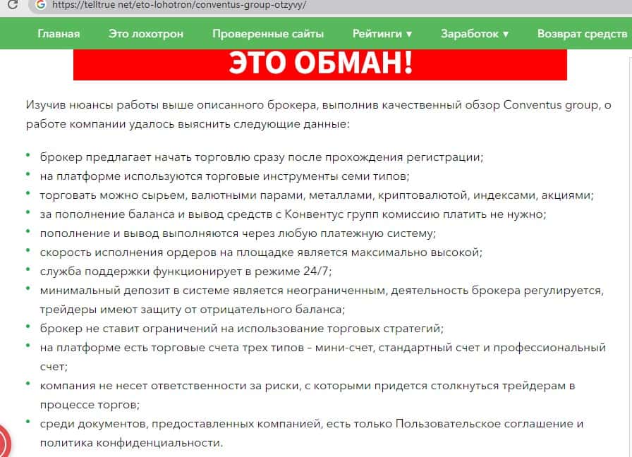 - Негативная статья посвящённая аферистам ConventusGroup