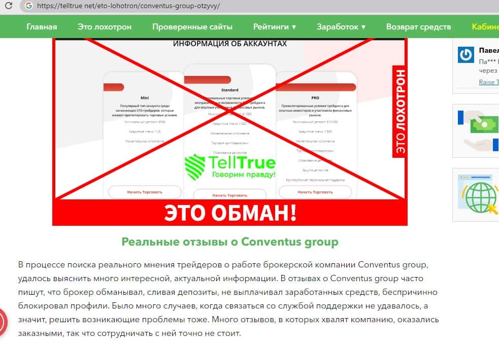 - Развод лохов на доверии от мошенников Конвентус Групп