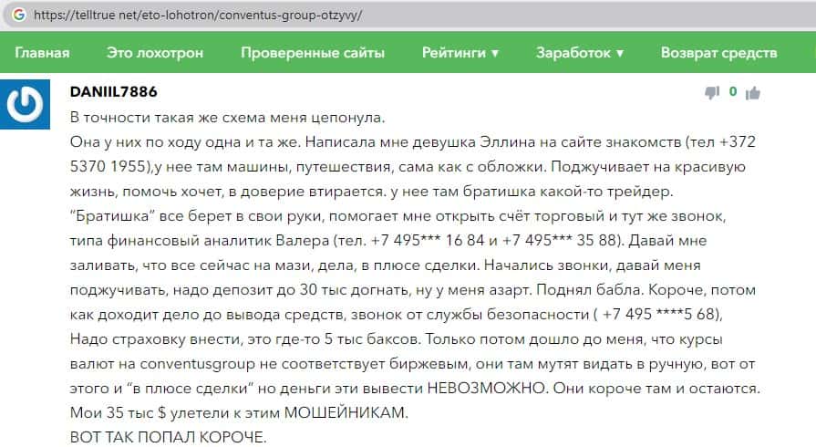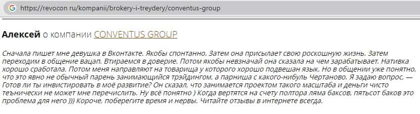 - Мошенники Конвентус Групп разводят трейдеров на доверии в отношениях
