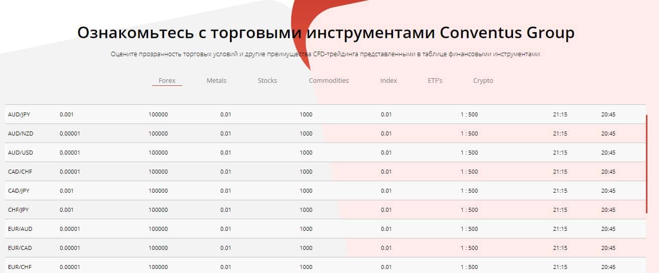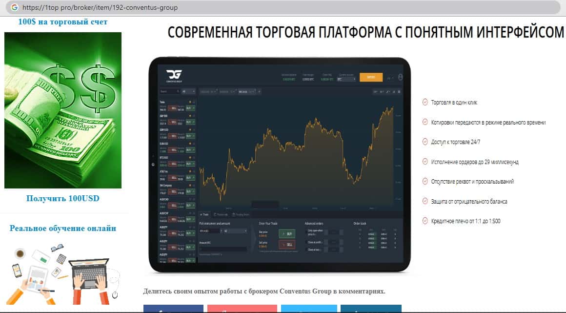 Всё, что предлагается трейдерам которые и так ничего не понимают это ознакомится с торговыми инструментами с помощью которых на финансовых рынках зарабатывают настоящие брокери, но на данном сайте аферистов ConventusGroup всё, что представлено не имеет никакого смысла.