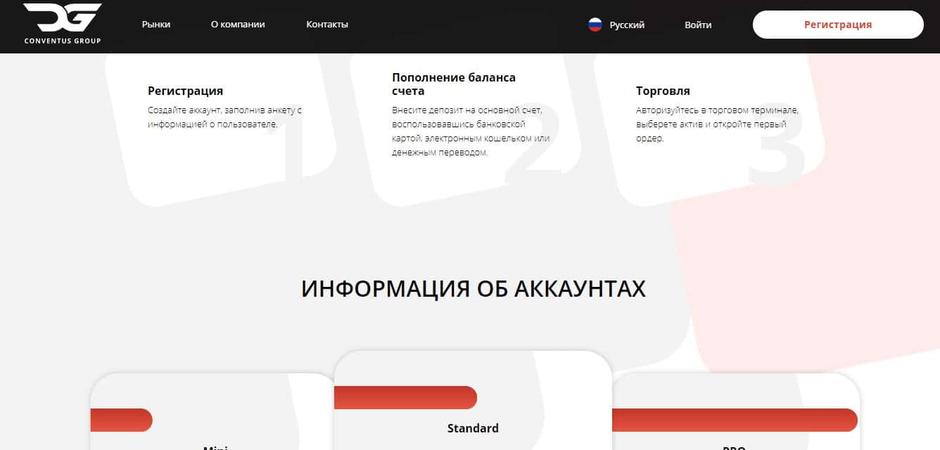 По мнению аферистов для начала торговли на финансовых рынках хватит всего три шага, после которых трейдеры смогут зарабатывать на финансовых рынках с помощью подвальной конторы Конвентус Групп. но на самом деле даже у мошенников ConventusGroup нет достаточно опыта и средств для правильной торговли.