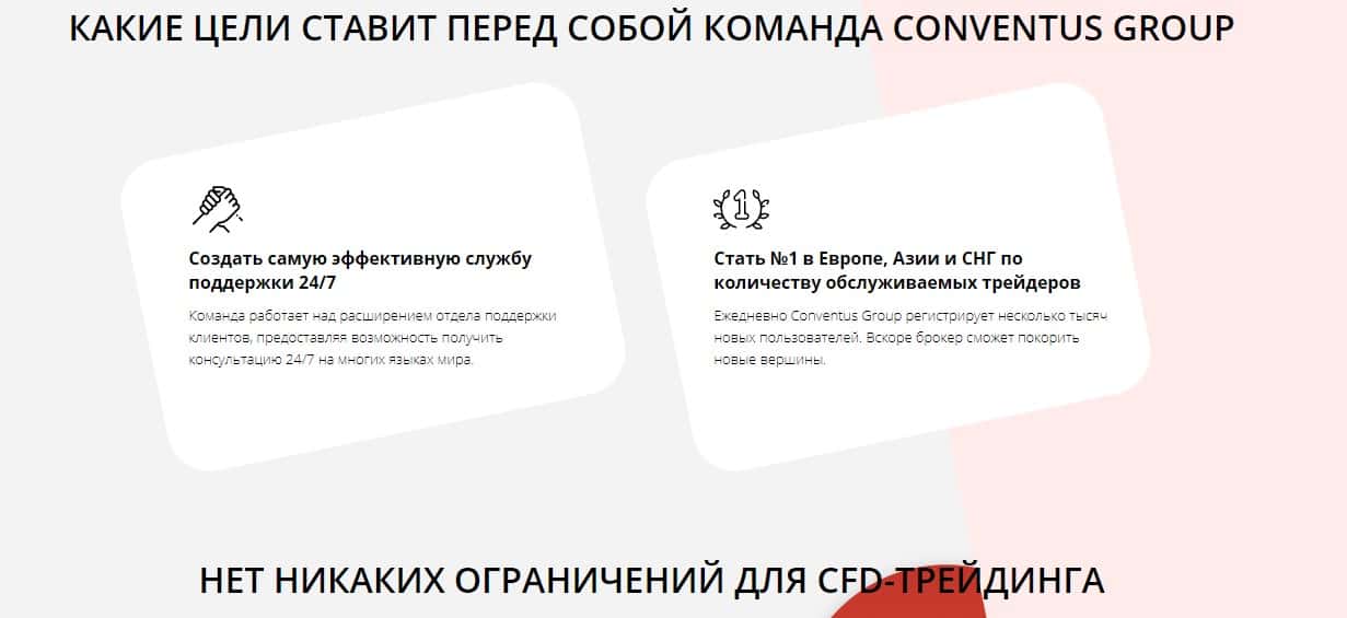 С целью повысить свою убедительность в глазах вкладчиков аферисты Конвентус Групп придумали раздел в котором продемонстрировали трейдерам как они беспокоятся о своих вкладчиках и какие могут быть бонусы если они будут работать вместе. Но кроме лживых обещаний ничего больше нет, сплошная лож.