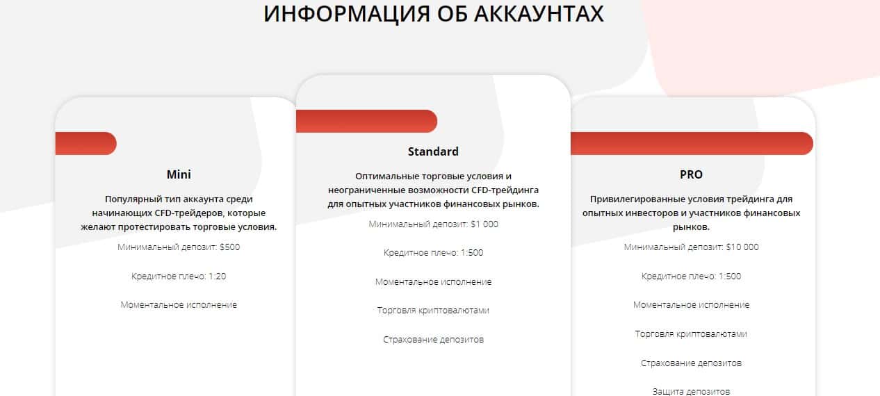 Для углубления и полной деморализации доверчивого вкладчика подвальный сайт ConventusGroup создал на своем ресурсе раздел в котором они представили несколько вариаций разных аккаунтов для своих трейдеров. В соответствии названию и наполнению аккаунтов повышается и цена первоначального взноса.