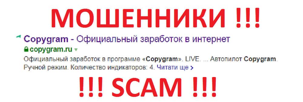 - Мошенническая организация Копи Грам абсолютно не предназначена для вывода средств!