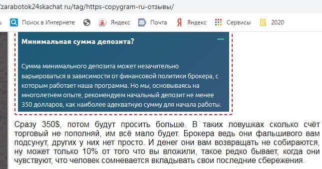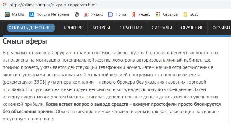 Детальный обзор официального сайта лохотронской конторы Копи Грам!