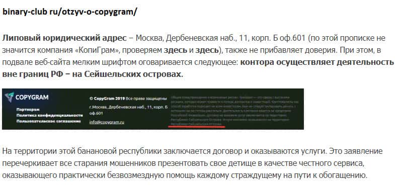 - Шарамыжная контора CopyGram Ru зарегистрирована на Сейшельских островах, в оффшорной зоне!