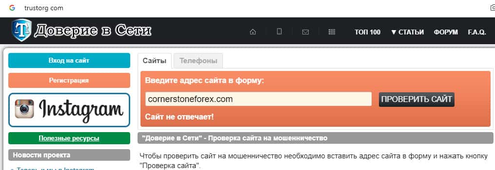 Шарлатаны из дилингового центра Корнер Стоун Форекс слились и закрыли свой незаконный интернет-ресурс