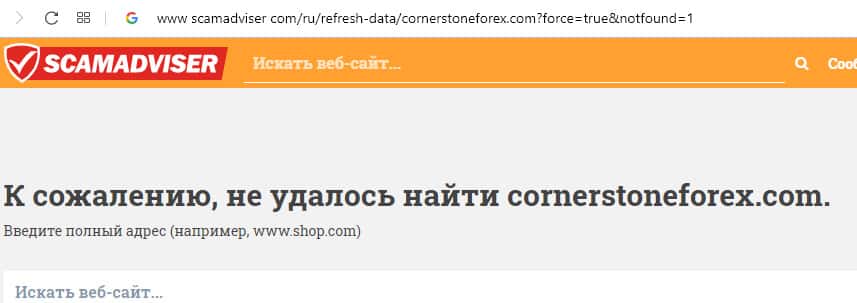 Остатки сведений о слившемся плутовском валютном брокере Corner Stone Forex